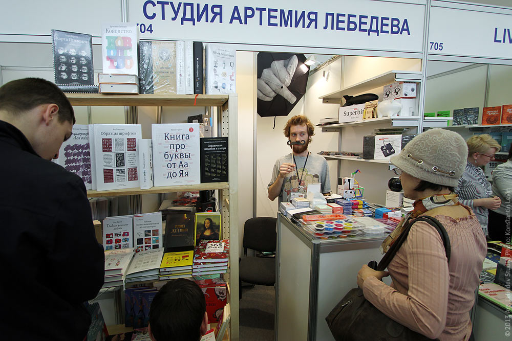8th International Book Fair in St. Petersburg: sales associate Pavel Koltsov working at the studio’s booth.