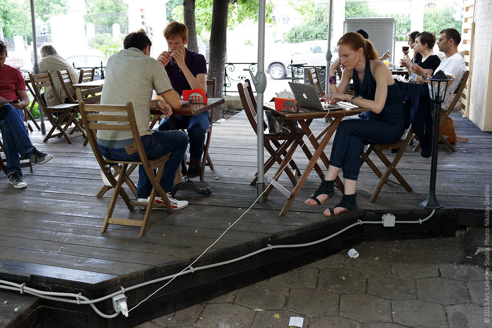 The patio at the studio’s café on Bolshaya Nikitskaya is now equipped with electrical outlets.