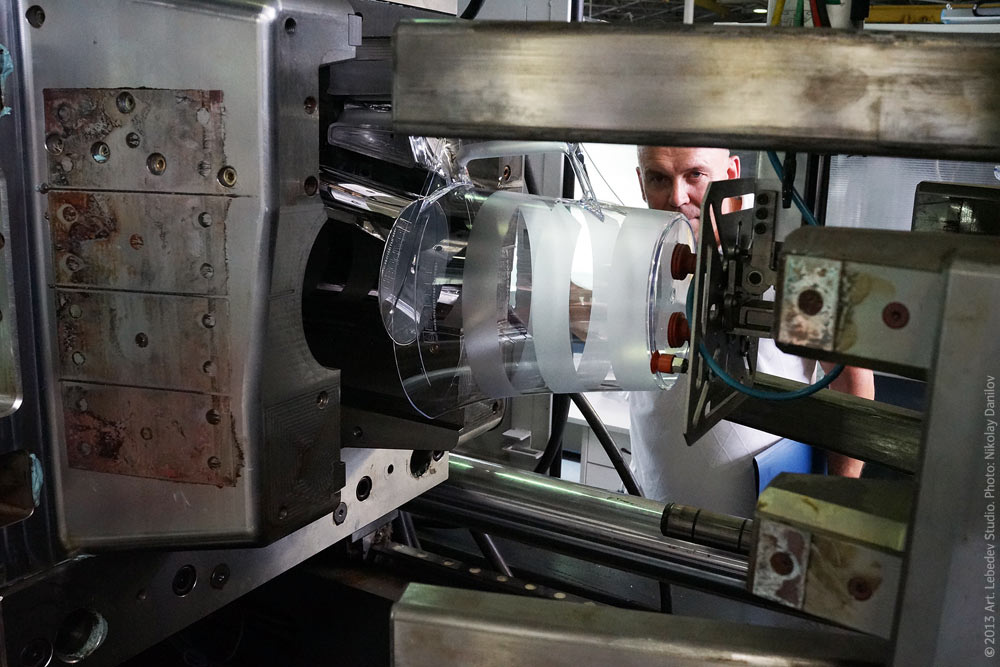 ![]() Korolyov, Barrier water filter factory: deputy head of production development Alexey Merkushev examines the mold and the molded pitcher designed at the studio.