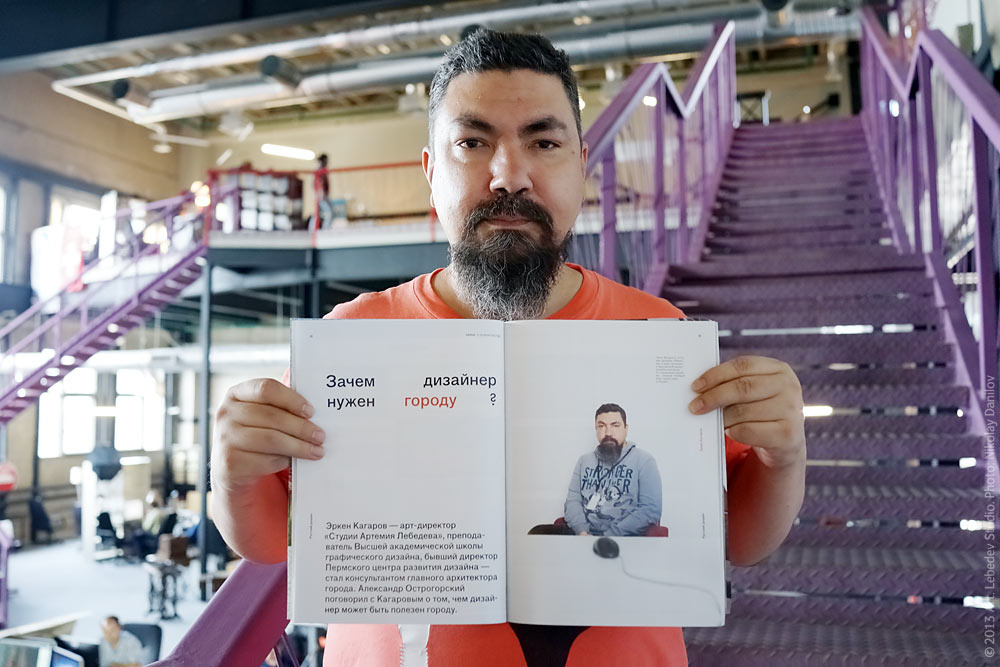 ![]() Art director Erken Kagarov with a fresh issue of Afisha magazine in which Erken Kagarov gives an interview about urban design.