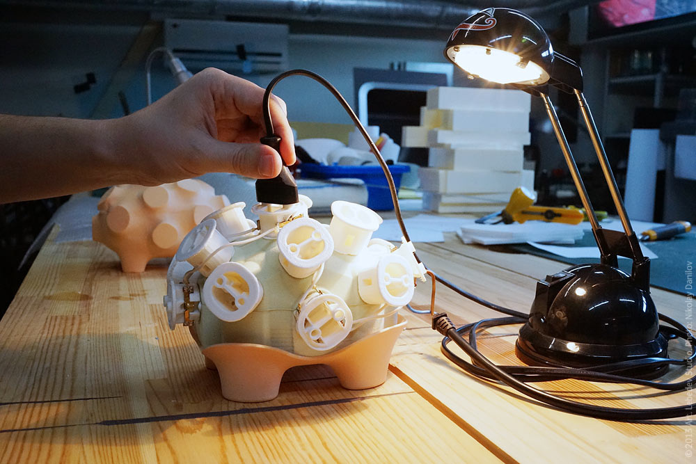 Testing a circuit diagram for a Svintus power strip functional prototype at the studio’s workshop.