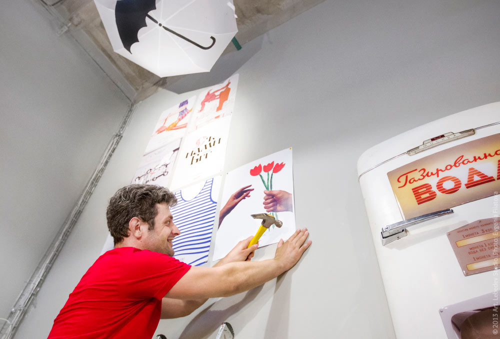 ![]() Left-handed sales expert Mikhail Kondratenko decorates Binom Nyutona store on the seventh floor of the studio with the International Left-Handers Day poster.