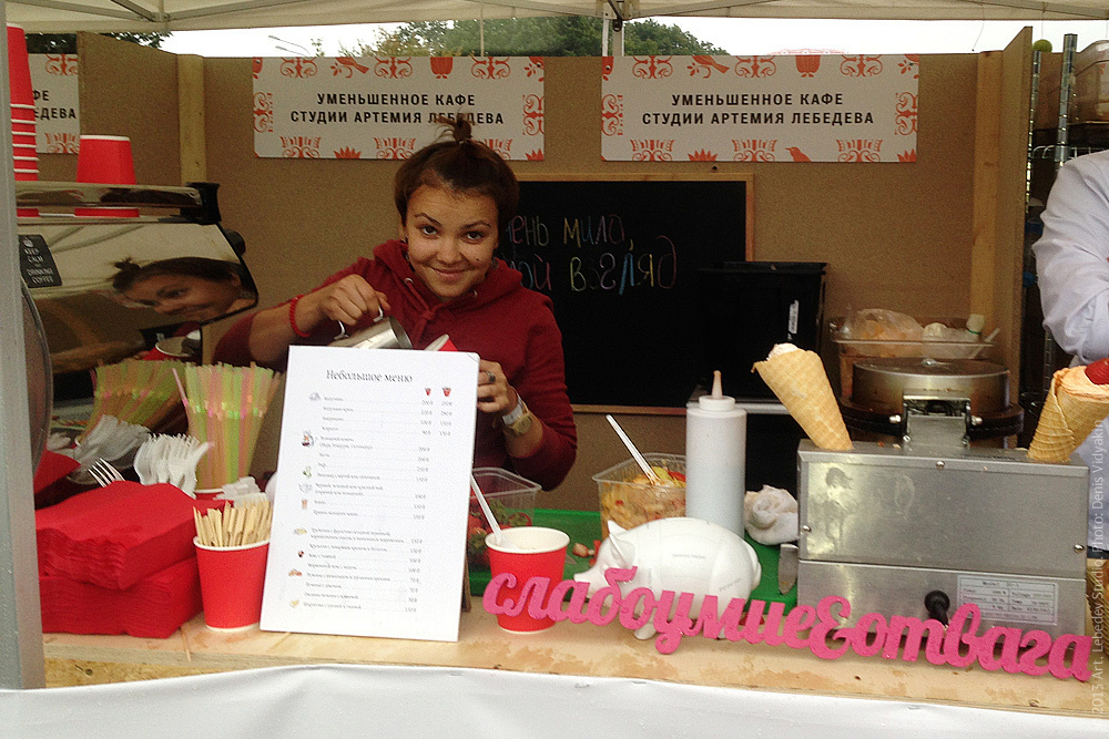 Barista Masha Kikinadze preparing coffee at the Afisha Food magazine festival.
