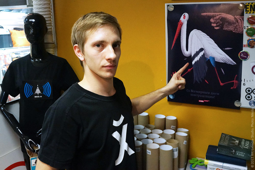 ![]() Sales associate Aleksandr Yurchenko at the Dreams Realization Point decorated with a World Contraception Day poster.