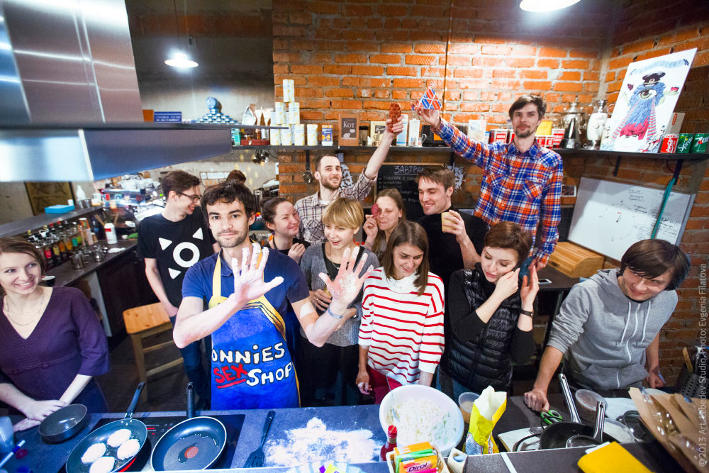 Designer Iskander Mukhamadeyev bakes sweet cheese patties in the studio’s café.