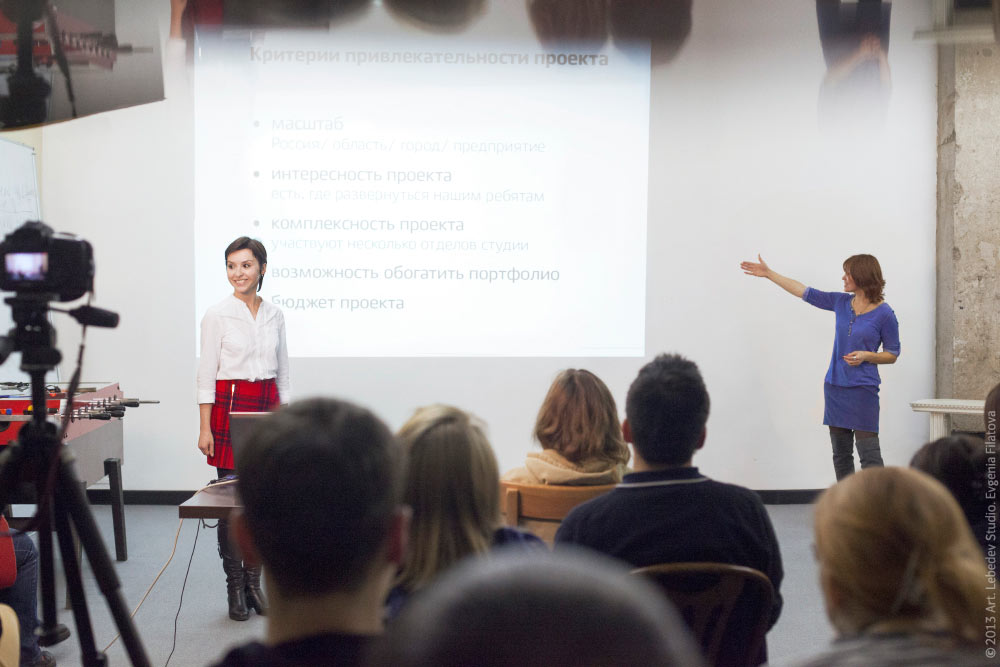 ![]() Another seminar at the studio: head of graphic design Natalia Moskalyova and sales manager Yevgeniya Mironova spoke about the operation of the graphic design department of the studio.
