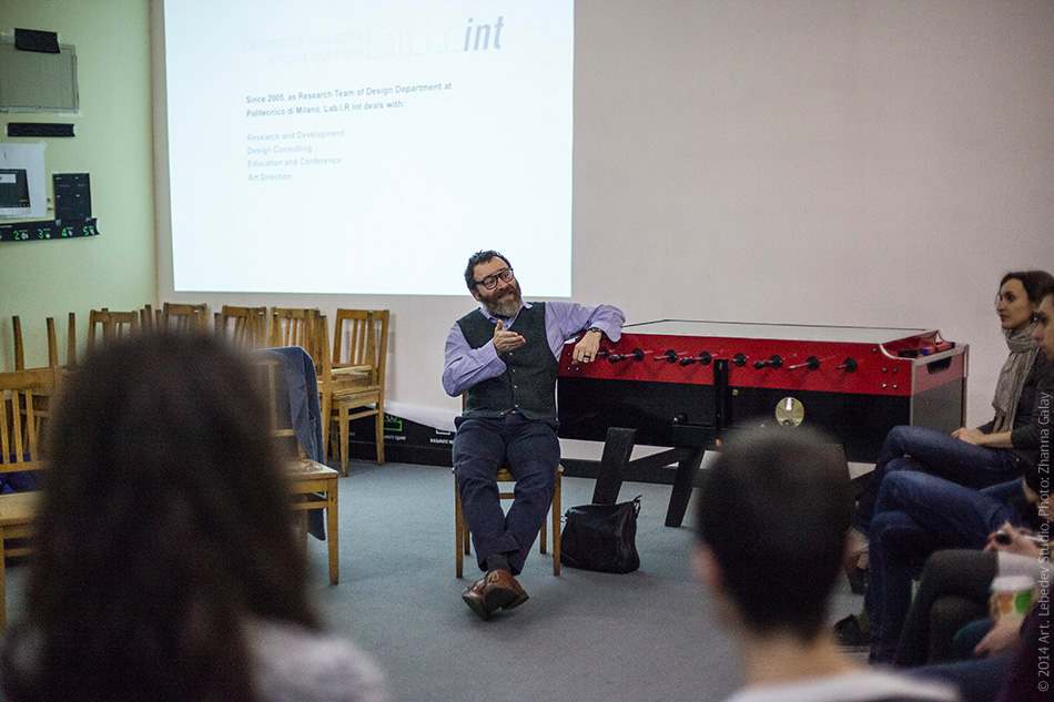 ![]() A seminar at the studio: Alessandro Biamonti, Design Research professor at Politecnico di Milano talked about how graphic communications work together with interior design in an urban environment.