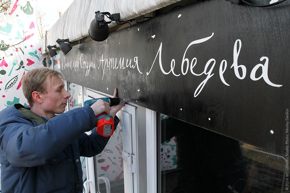 ![]() The studio’s Winter Café at the Hermitage Garden closes down. Pictured: sales assistant Egor Gorshkov removes the sign.