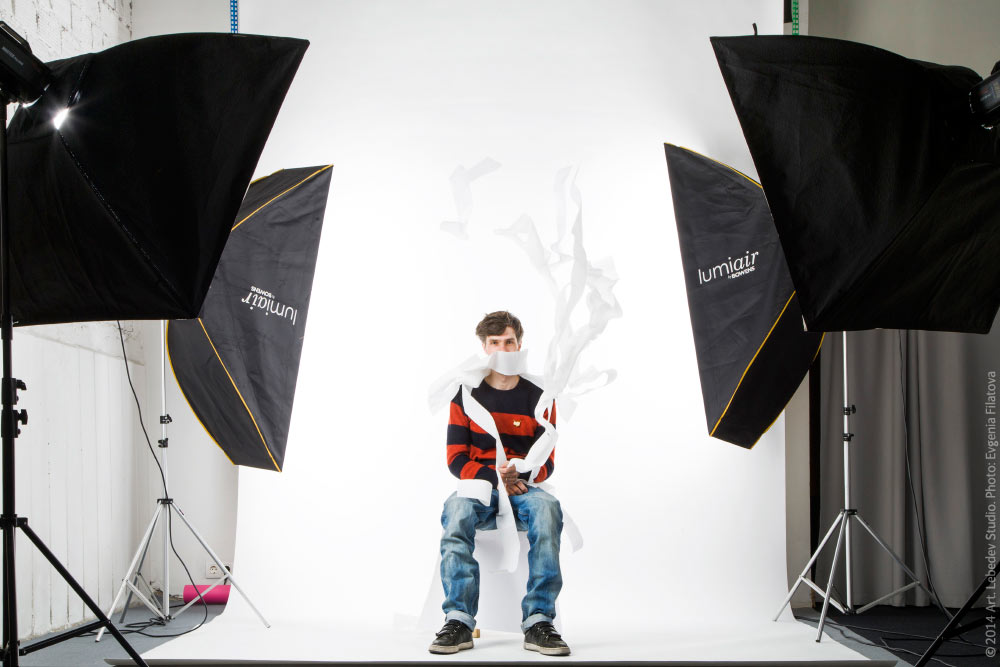 Designer Yevgeny Zorin poses for the advertisement of Burus toilet paper.