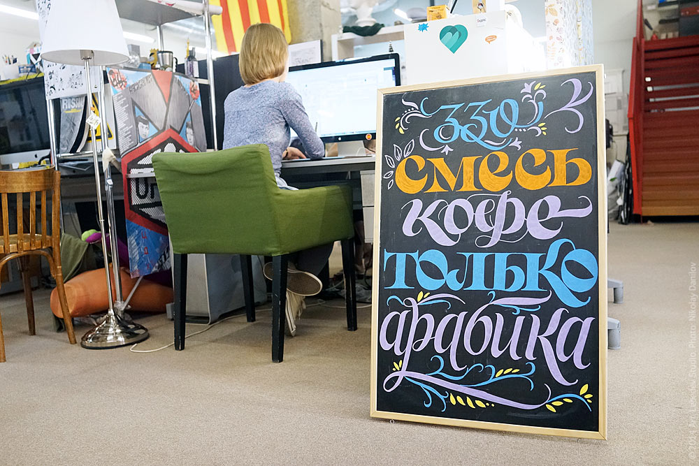 Type designer Ksenia Erulevich has finished decorating a new blackboard for the studio's Big Café.