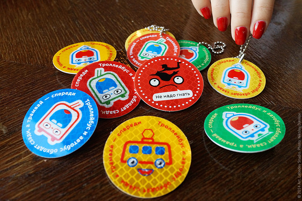 Reflective road safety pins made for Moscow Department of Transport and Road Infrastructure Development.