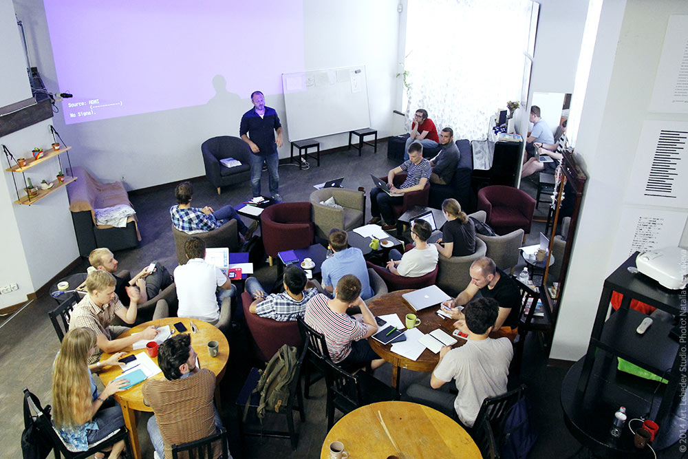 Kiev, Tsiferblat coworking center: art director Ludwig Bystronovsky conducts a designer training course.
