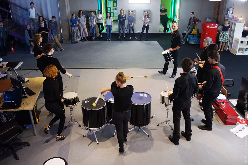 ![]() One of the traditions at the studio is for interns to prepare a surprise at the end of their internship. This time they invited drummers from the Enjoy Drumming percussion school.