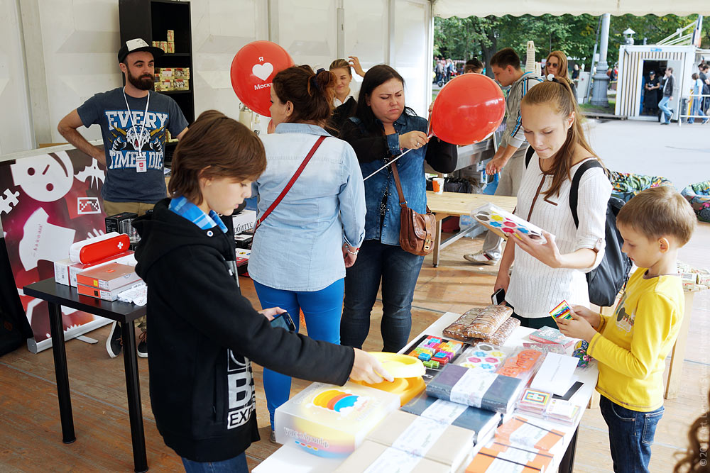 Studio’s traveling store at the Moscow Day celebrations in Sokolniki Park.