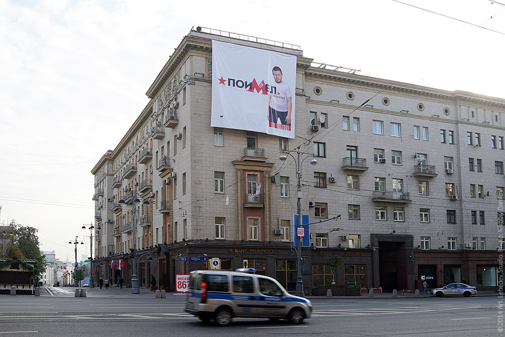 ![]() A poster that has been hanged by an organized group of unidentified individuals on the house at 6 Tverskaya Street, opposite the Government of Moscow building.