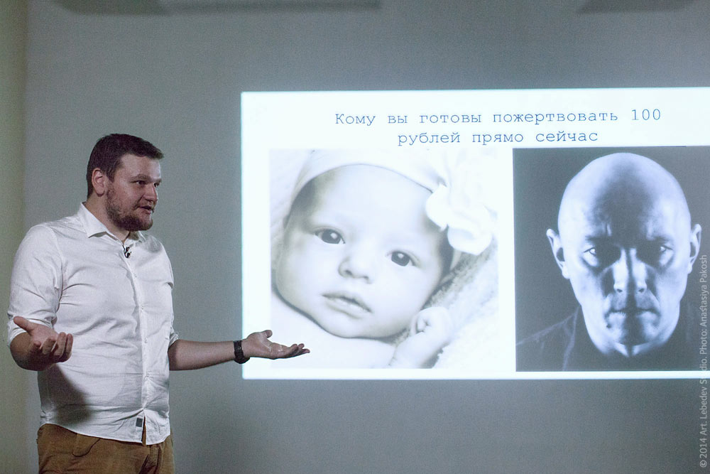 ![]() Another seminar took place at the studio: Mitya Aleshkovsky, head of the Nuzhna Pomosch charity project, spoke about how charity works.