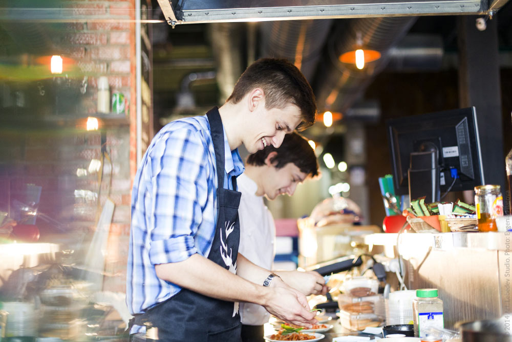 ![]() On Wednesdays specially invited guest chefs cook lunches for studio employees in the café on the seventh floor of the studio. Pictured: chef Ivan Olenkovich, who normally works in the studio as a designer, cooks pasta