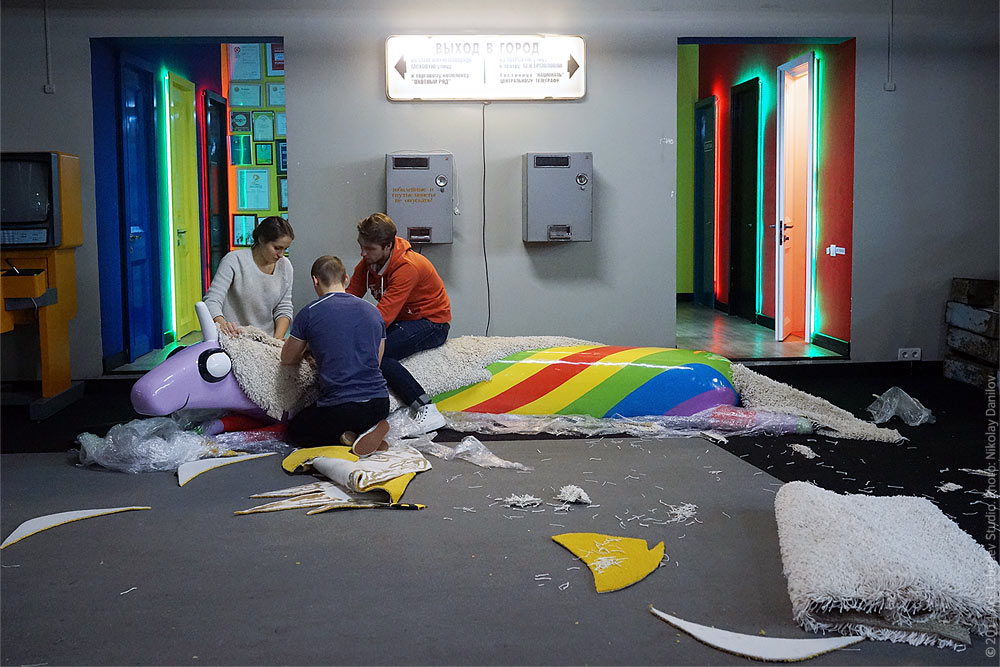 Architect Anastasia Tikhonova, desginer Andrey Fabishevsky and designer Boris Tarasov remake Lady Rainicorn’s mane.