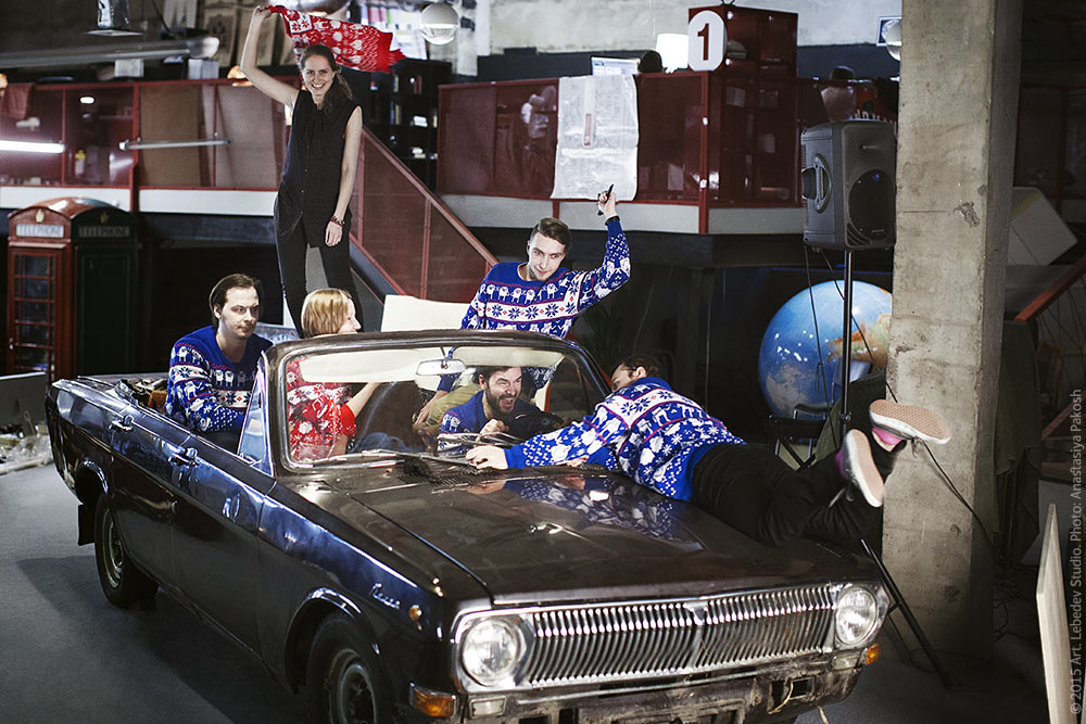 ![]() At the end of the Adventure Time festival furniture project, the client presented everyone involved with a sweater with the series’ characters. Pictured (left to right): designer Yegor Zhgun, architect Anastasia Tikhonova, head of industrial department Larisa Melnikova, manager Alexei Luri, designer Boris Tarasov and designer Andrey Fabishevsky have fun in their new sweaters.