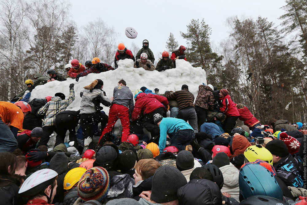 ![]() Bakshevskaya Maslyanitsa in Khlyupino village outside Moscow: Ridibundus takes part in the storming of a snow fort.