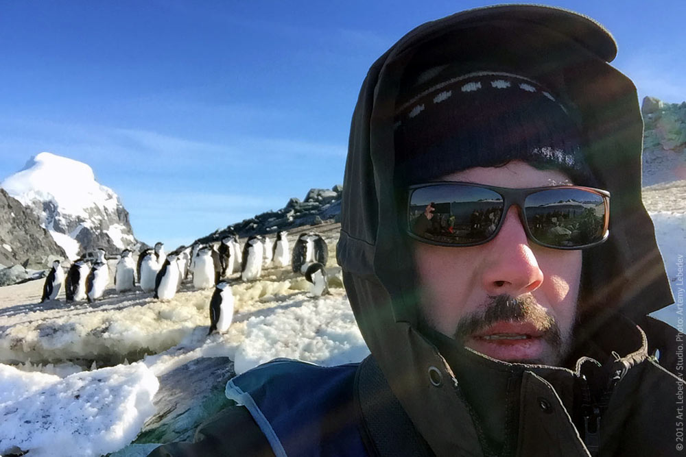 South Orkney Islands: Artemy Lebedev takes a selfie with penguins.