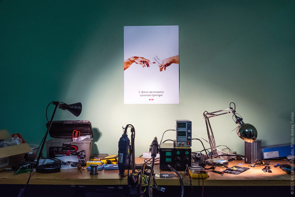 The System Administrator Appreciation Day poster in the office of the studio’s system administrators.