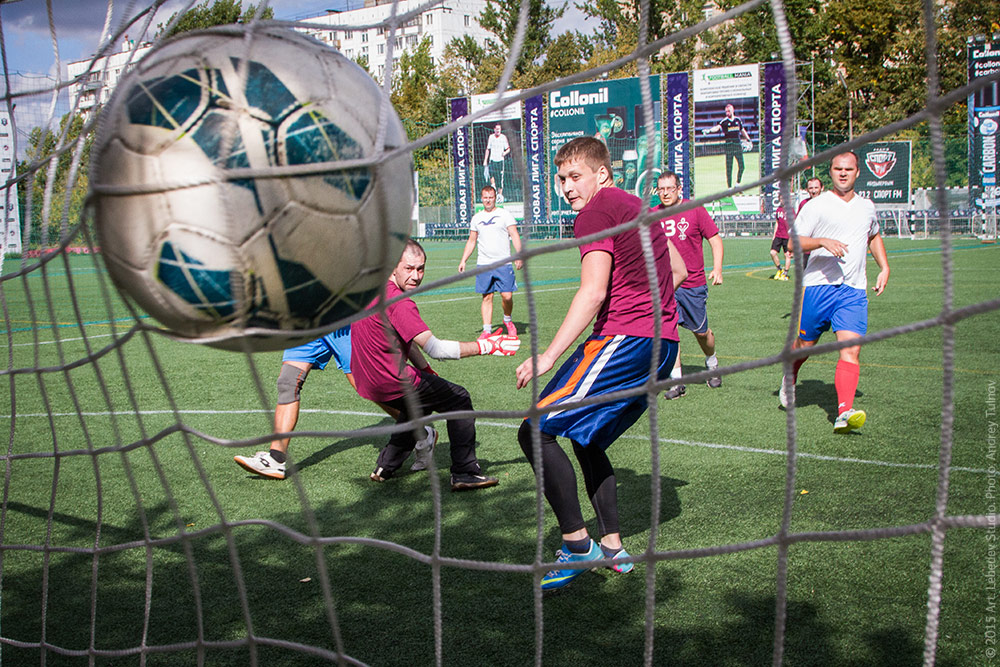 The studio's 9th Mini Football Championship: Odyshka team scores a goal in a match against Borsch.
