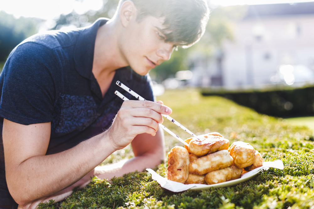 Andrey Tchaikovsky trying out Natalis chopsticks.