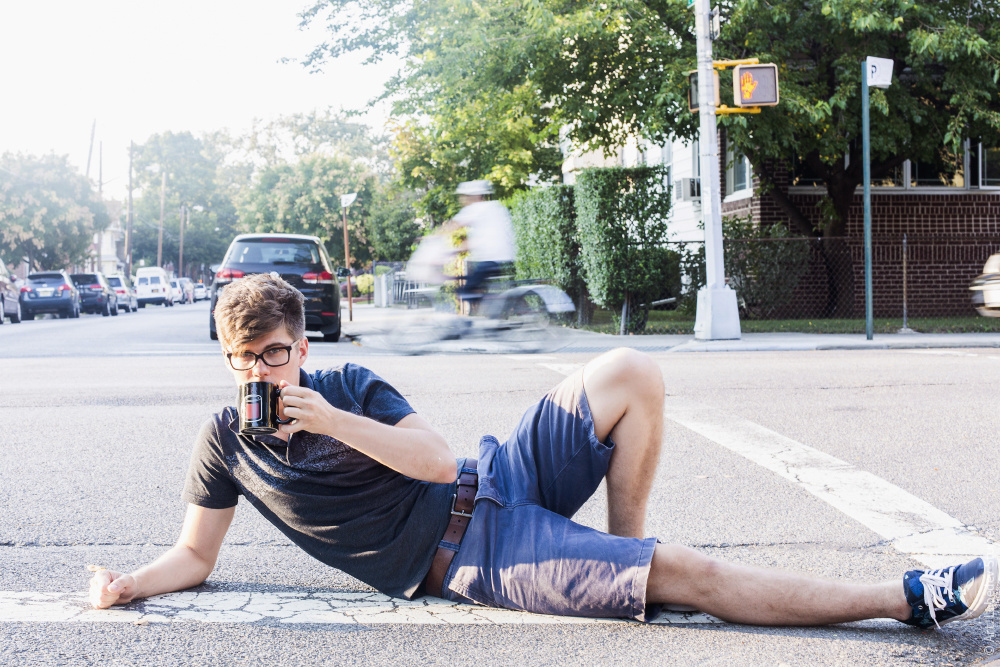 Manager Andrey Chaikovsky drinks tea out of a Termokruzhkus mug in New York.