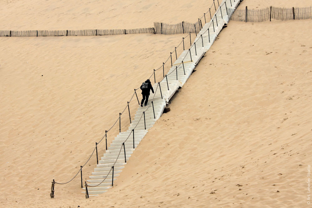 Art director Ludwig Bystronovsky ascends the Dune of Pilat.
