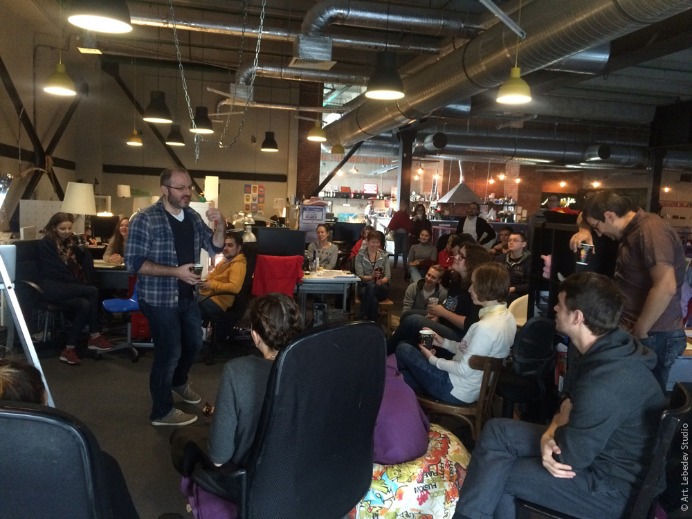 Ludwig delivers a Saturday lecture for studio employees in the manager valley.