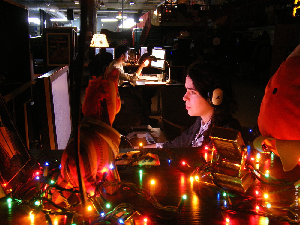 Technologist Alyona Malashenko at her workplace decorated for the upcoming holidays.