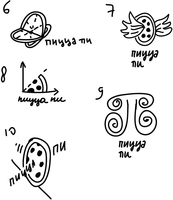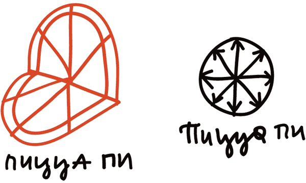 We need to come up with a modern nice-looking logo that would look good on a sign. A quick run around the internet confirms that there are a lot of cafés that have already utilized the math side of pizza-making. All the diameters, angles, kitchen algebra and stove-top geometry are giving people pretty much similar ideas. There is even a pizza cutter in the shape of letter Pi. The style of all the places has an air of sad student nerdiness. Geeks in da house, a round of pepperoni to everyone!