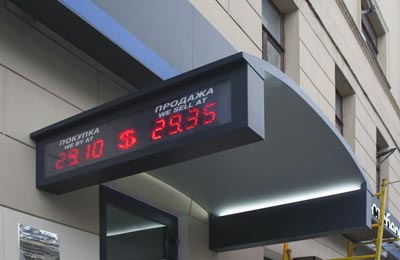 The construction solves aesthetic problems typical displays with currency exchange rates usually face
