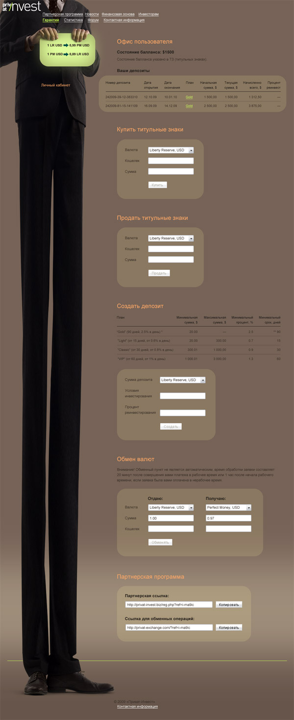 Personal account page with stretched legs.