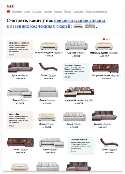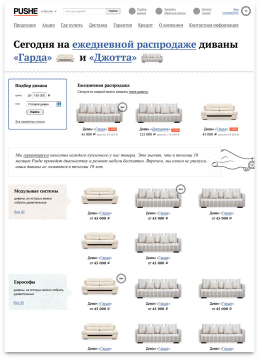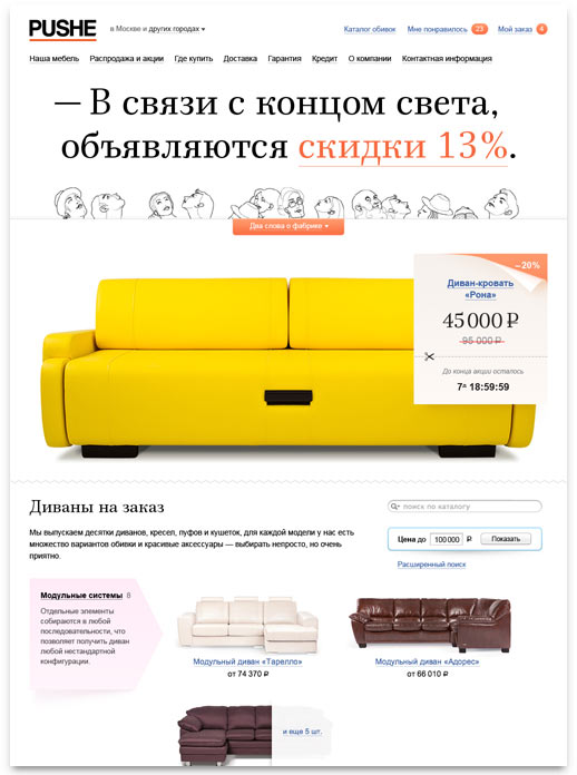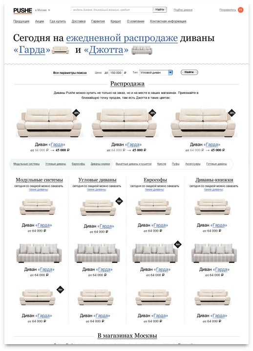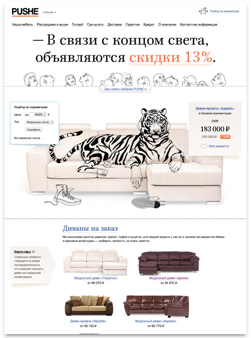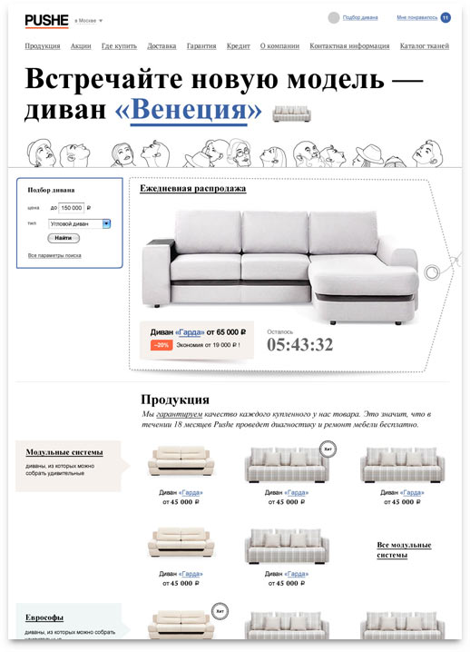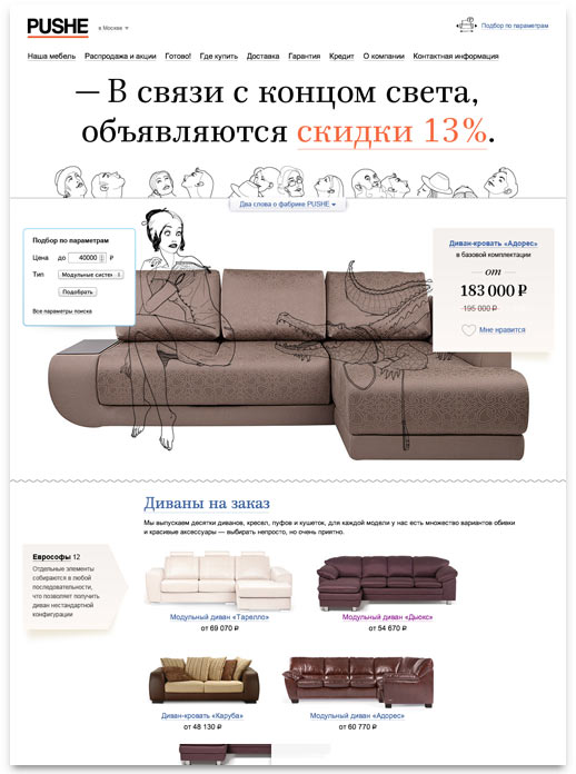 Pushe is a large furniture factory and not just an online store. We have to show it somehow. We come up with an illustrated story about the production. And we show, where and how it should appear.