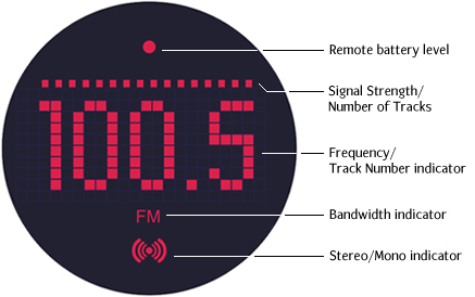 The two are identical, so if you turn up the volume using one, the one will also display the level change. If you push the Play button, it will light up on both radio remotes. Pressing Eject causes a CD to slowly slide out. |