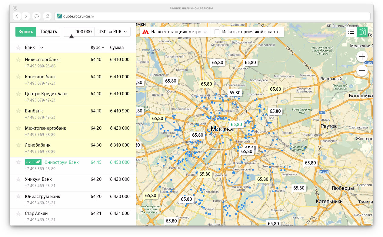 Visitors of the website can track exchange rates of currencies in real time and quickly find offices offering the most favorable rates.