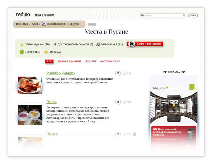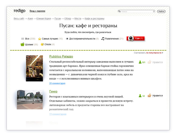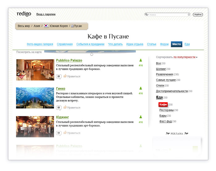 The Places page needs additional navigation by point of interest types. Looking for a suitable layout.