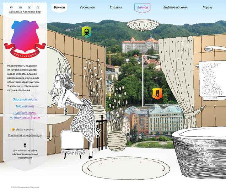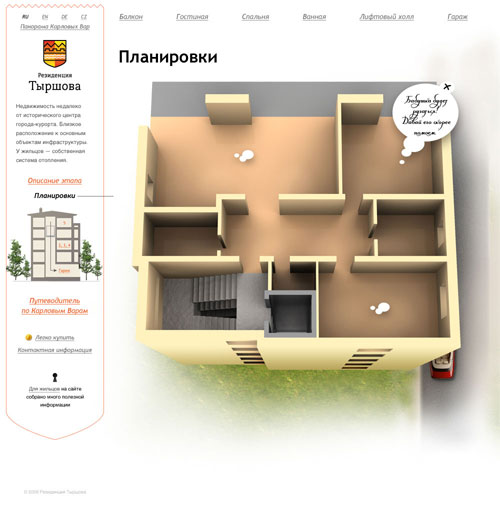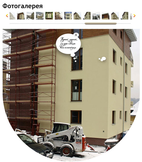 Then we entered speech bubbles. Characters, things in the room and bubbles would move depending on the window width, so we prepared two layouts for each page: for large and small displays.