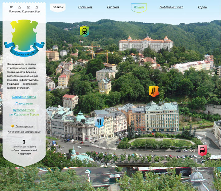 Adding coats of arms with links to the closest places of interest and stores for future residents.