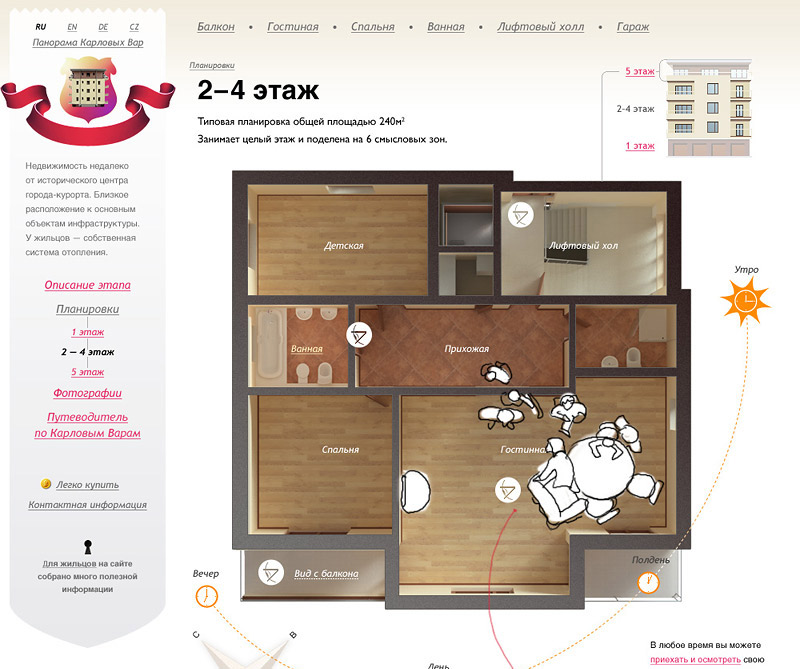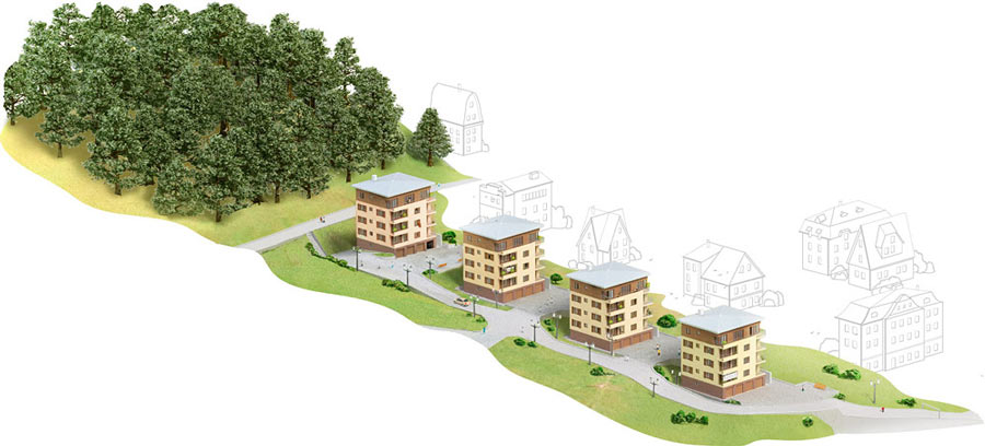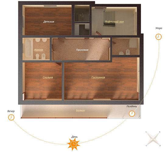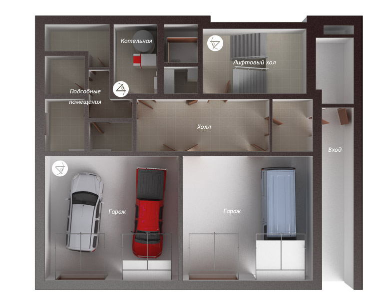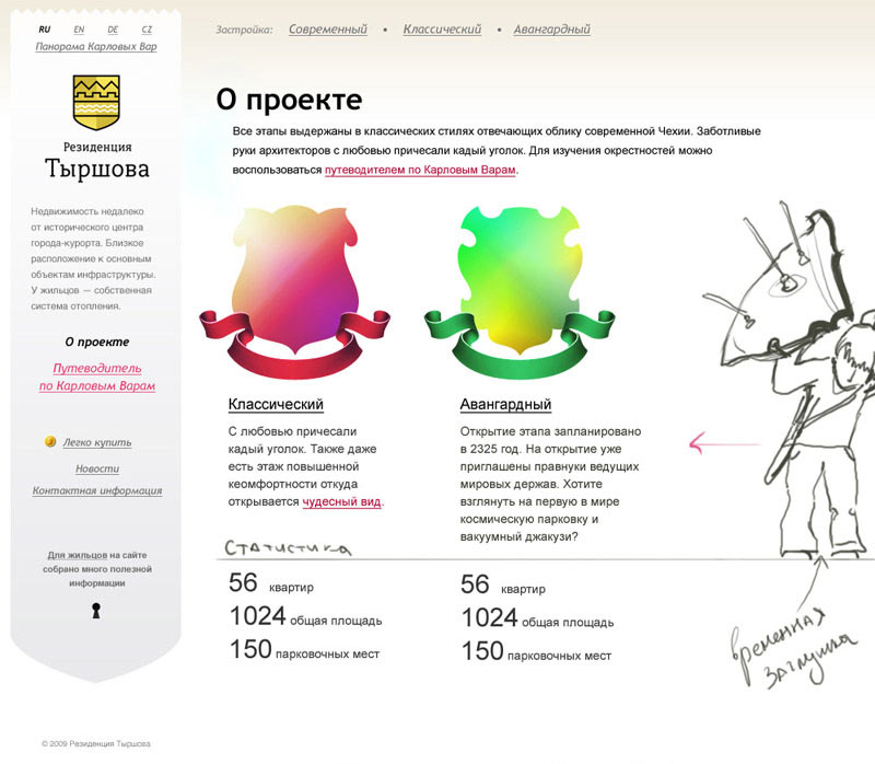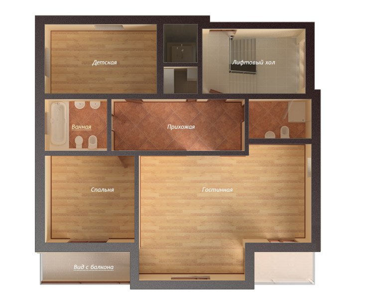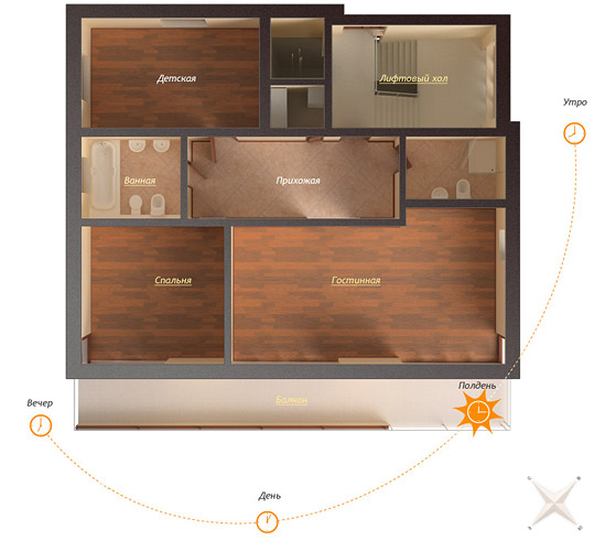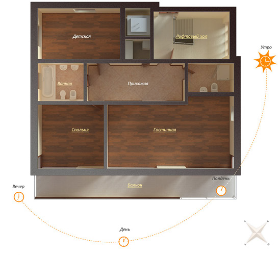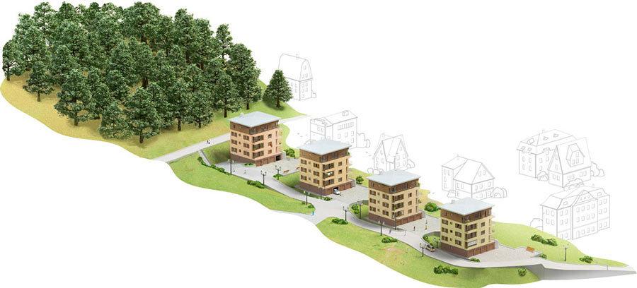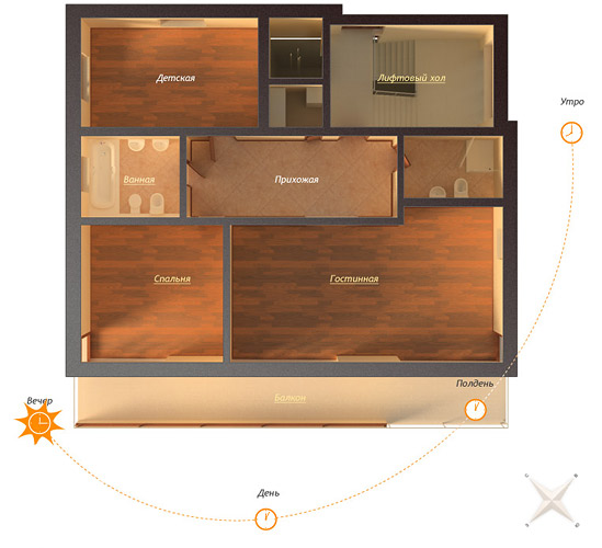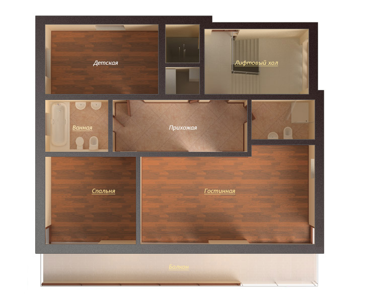 Three standard apartments visualized, with light effects. Rejected by the client.