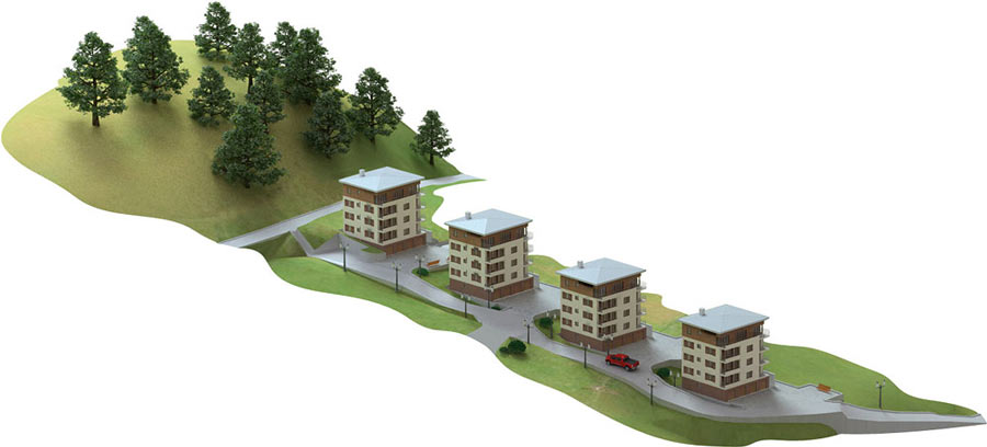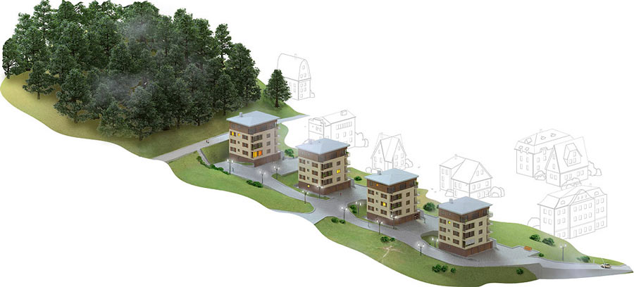 We took a picture of the house, isolated, cleaned and modeled it, and then combined the 3D and the photograph. Too bad it wasn’t used anywhere.