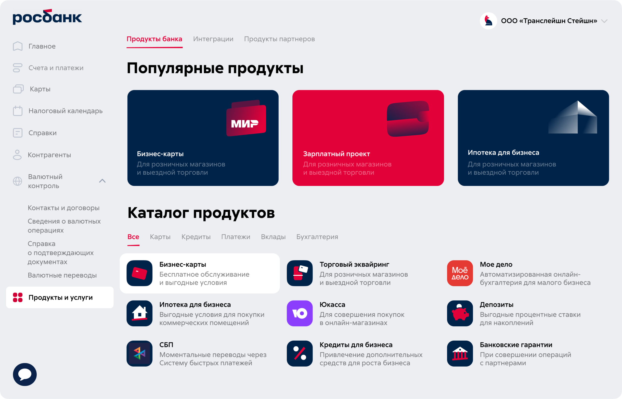 Rosbank provides convenient and functional tools for managing financial operations and banking services. The account page for small businesses was designed in the studio.