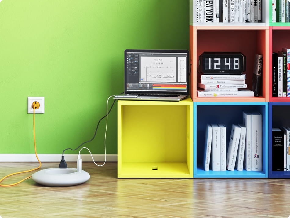 Rozetkus Bublikus can accommodate all low-power household appliances connected in any order: lights, chargers, hard drives, clocks and other devices with 4 mm ungrounded CEE 7/16 europlugs.
