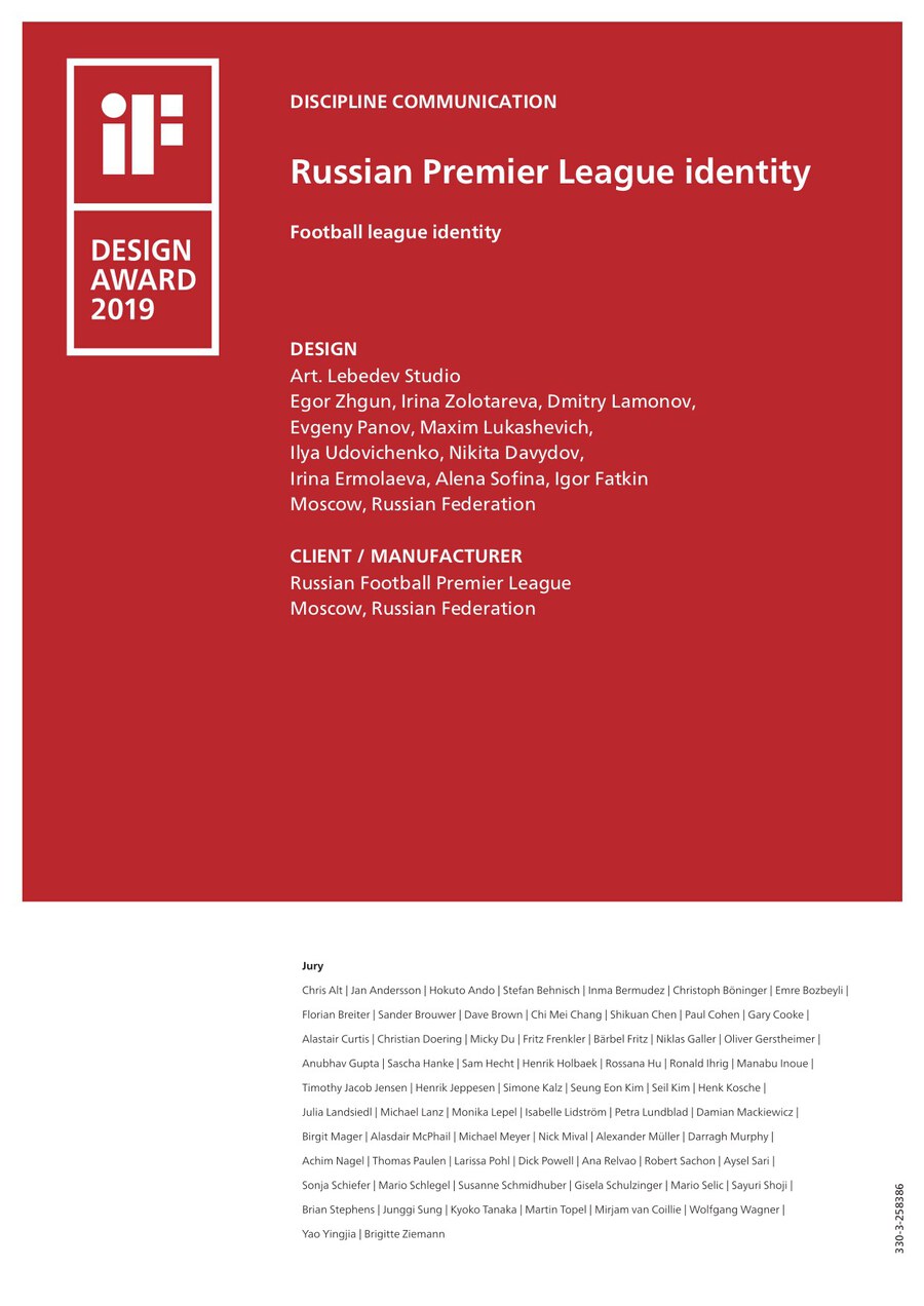 Logo Identity TV graphics Typeface Award Cup Medals Award for the Russian Premier League Identity Award Overview Vector Award Feedback iF Communication Design Award March 2019