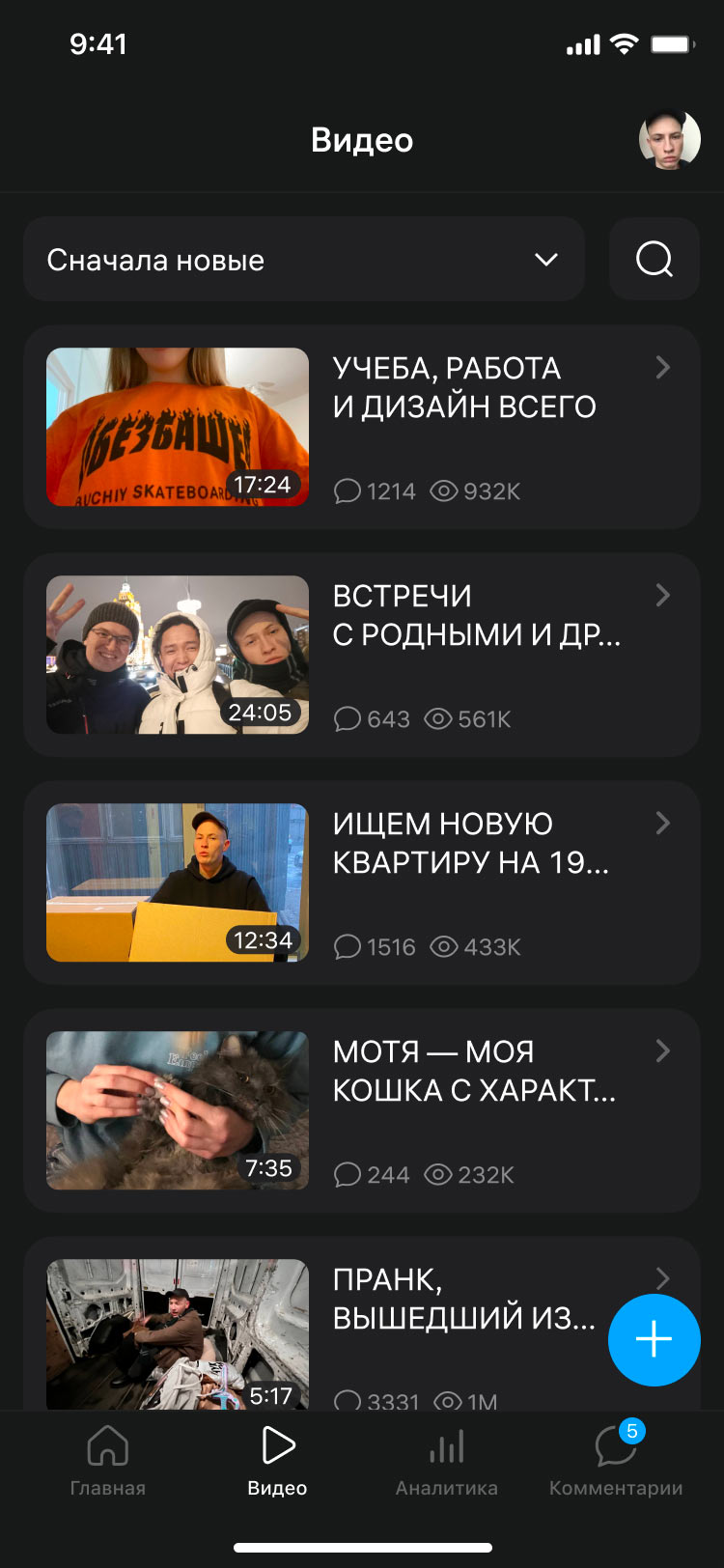 RuTube Studio is an application for content creators who need convenient access to channel management at any time, here and now. The studio came up with an idea of what the app should look like to make it easy for users to upload videos, create profiles, start live broadcasts, follow analytics and work with comments.