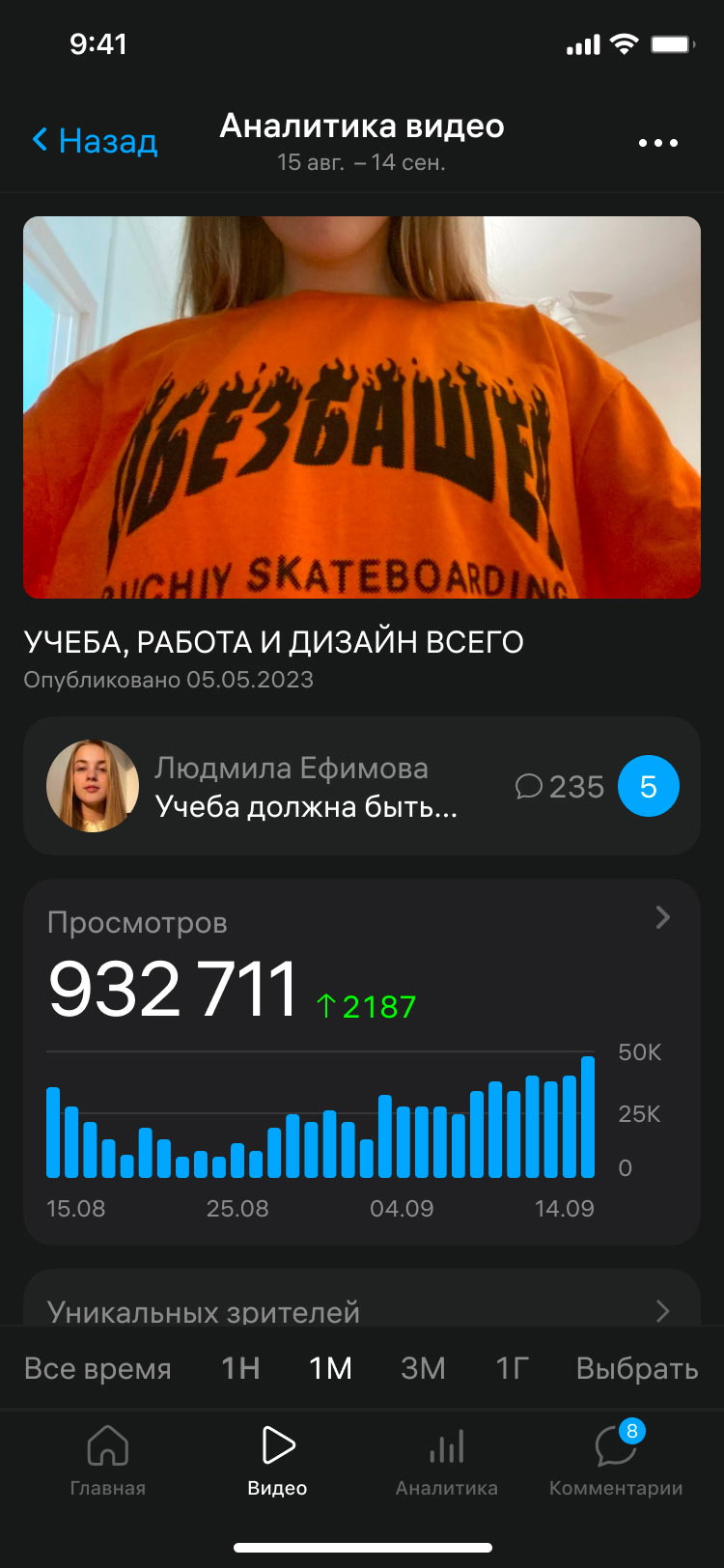 The main page with quick access to channel stats and analytics for the latest video can be customized. It’s simple and clear.