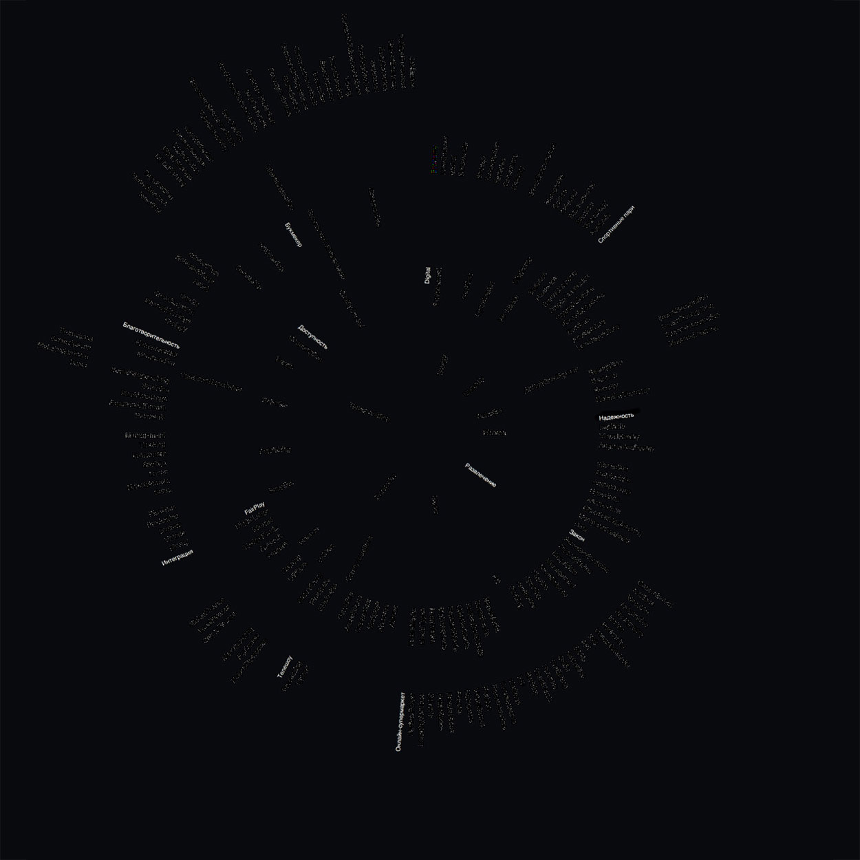 The company’s investment interests are broad and diverse. Showing the scale of the projects in infographics. The logo becomes the starting point, the center around which all investment areas orbit: from the core ones such as the energy industry and education, to the most fringe ones, such as talent search.