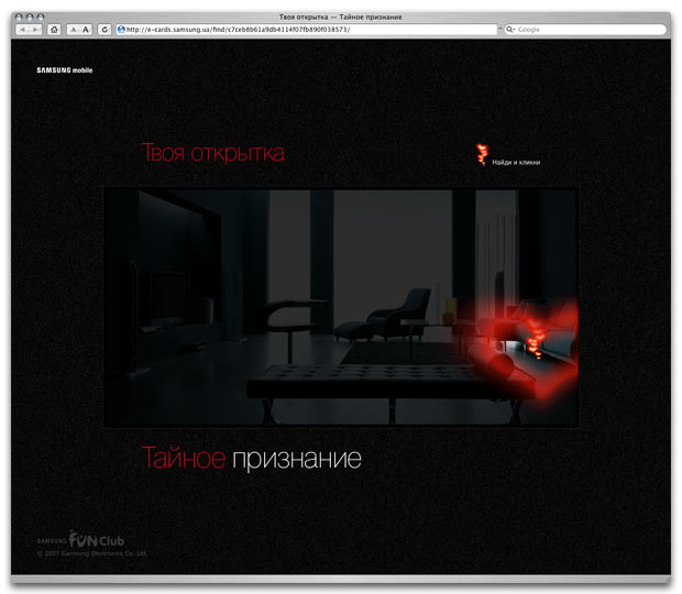 The website was meant for Samsung Fun Club members to send greeting cards with secret messages to one another. ![]() One hides, another finds